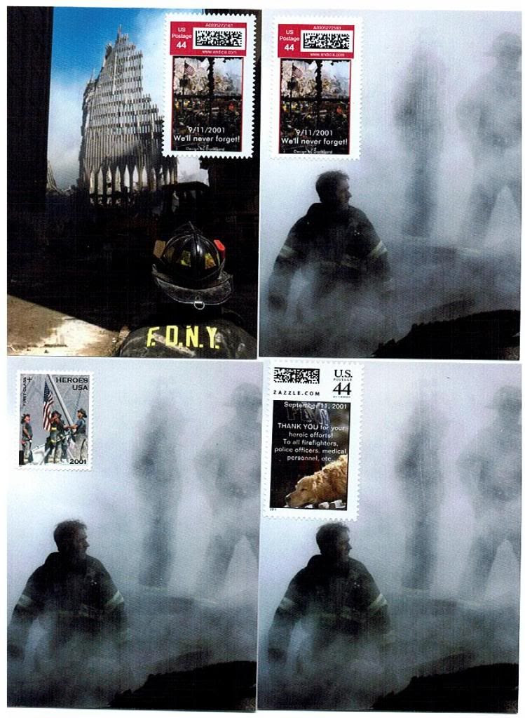 | I have sent these to the Shanksville, PA Post Office for philatelic postmarking, to create maximum cards. Notice the flight path of US Airways, Flight 93. "Let's roll!" |